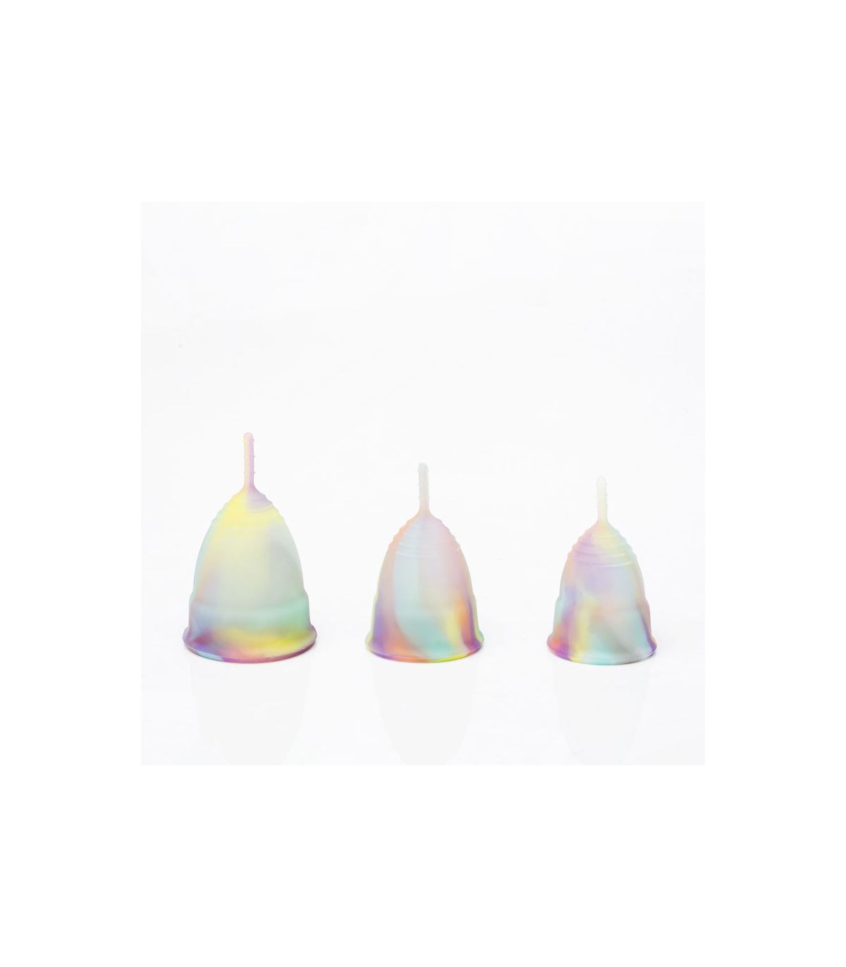 PARA TODAS LAS MUJERES: Tres tallas diferentes, S, M y L para adaptarse a diferentes características. Talla S para poder usar desde la primera regla. Copa L con mayor capacidad del mercado para momentos en los que el flujo es mayor.