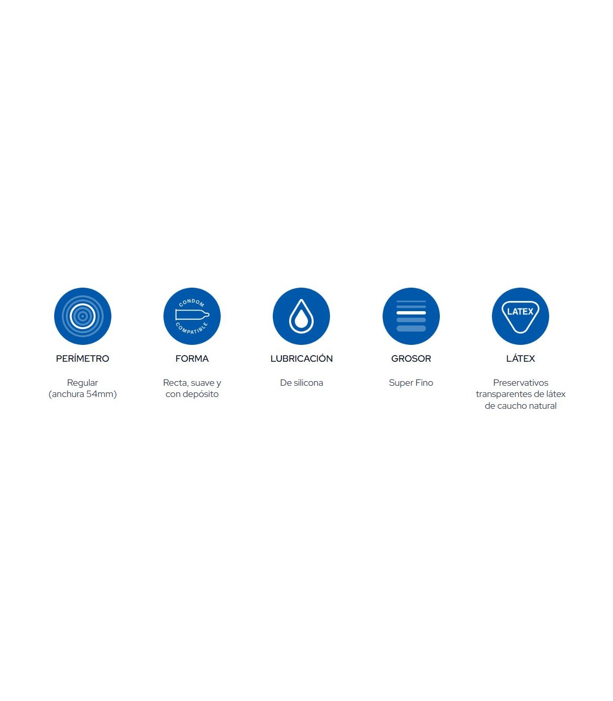 Durex® Sensitivo Super Fino son unos preservativos elaborados con látex de caucho natural y un diseño ultra fino para ofrecer mayor sensibilidad y una protección imperceptible. Son de fácil ajuste, tienen una textura lisa y extra lubricación. Es transparente y de fácil colocación.