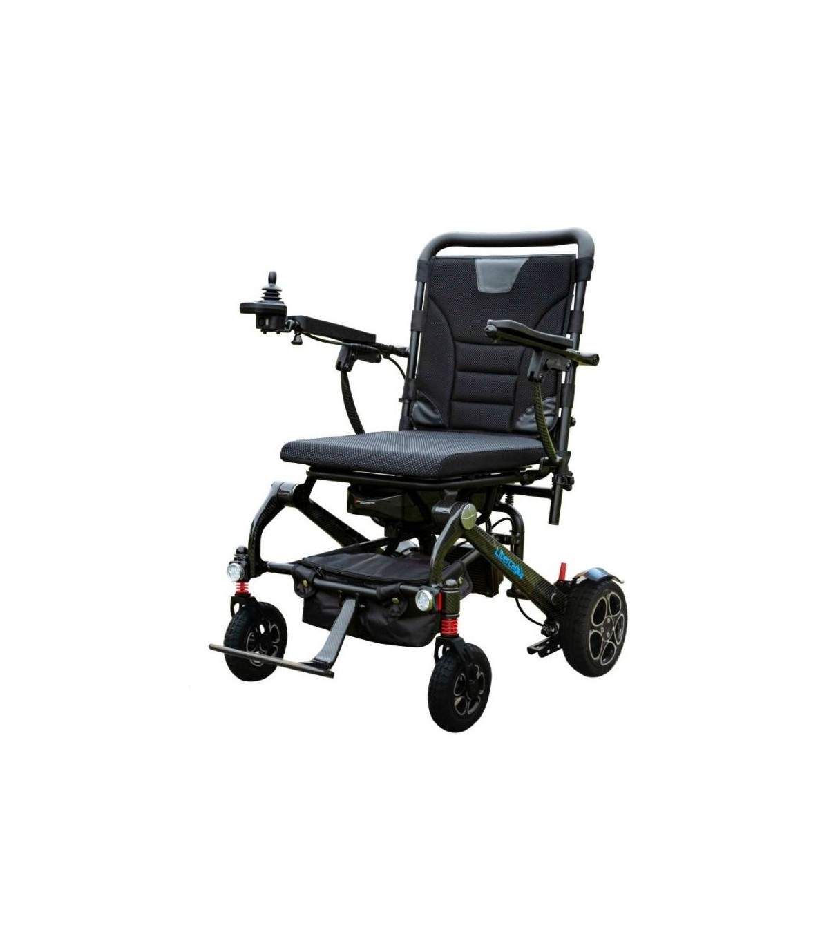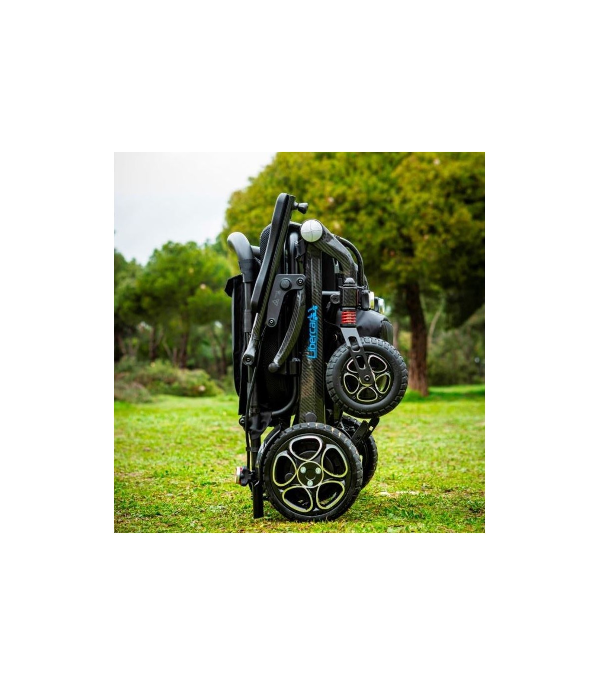 La Libercar Alma es la silla de ruedas eléctrica más avanzada, diseñada con fibra de carbono ultraligera para ofrecer máxima resistencia con un peso mínimo de solo 18 kg (20kg con baterías incluidas). Su batería de litio 12Ah proporciona una autonomía de hasta 16 km, perfecta para el uso diario. Equipada con joystick desmontable quick release, doble amortiguación y asiento viscoelástico, garantiza una conducción cómoda y segura.