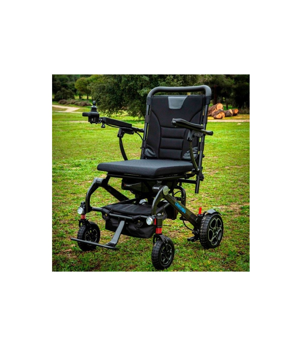 El peso de la estructura de la silla es únicamente de 18kg siendo la silla eléctrica más ligera del mercado. La batería de litio pesa 1,8kg en la versión de 12Ah.
