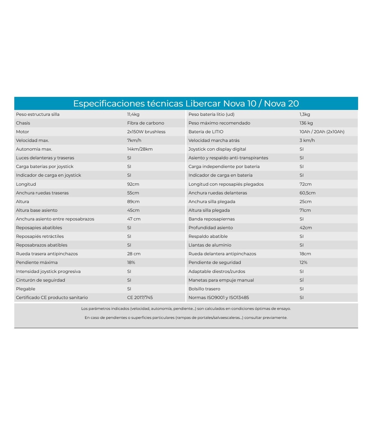 Silla de ruedas eléctrica de fibra de carbono Libercar Nova es la nueva apuesta de la marca y se convierte actualmente en la silla más ligera de mercado con tan solo 11kg de peso, ¡se levanta solo con un dedo!. La fibra de carbono es 2 veces más ligera que el aluminio y a su vez es 5 veces más dura que el acero. Este material es altamente apreciado debido a sus excelentes propiedades, su gran durabilidad y a su aspecto elegante.