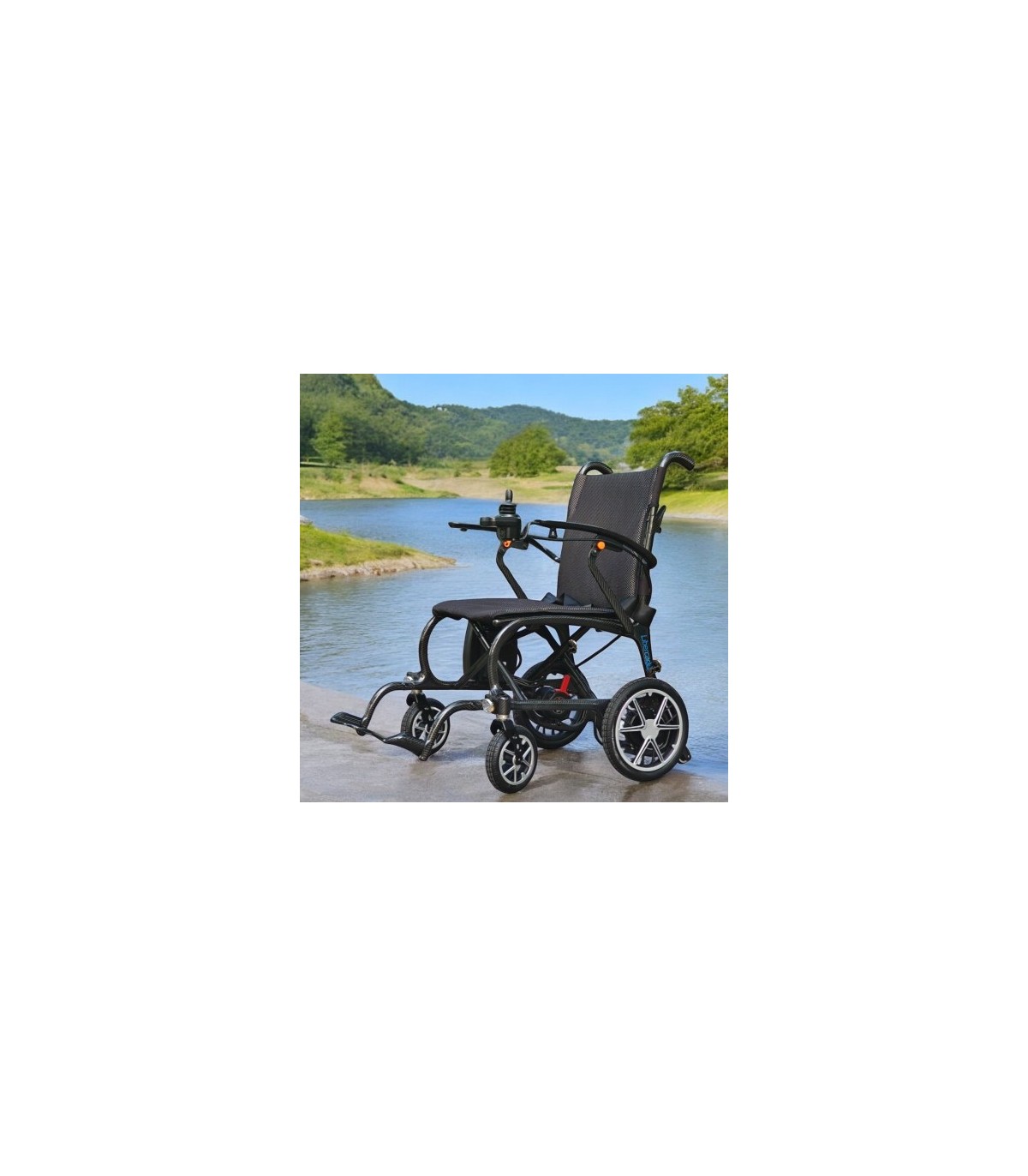 Silla de ruedas eléctrica para personas con movilidad reducida, Libercar Nova dispone de una batería de litio (10Ah) que junto con su chasis de fibra de carbono le proporcionarán un peso ultraligero (estructura 11kg, peso batería: 1,3kg).