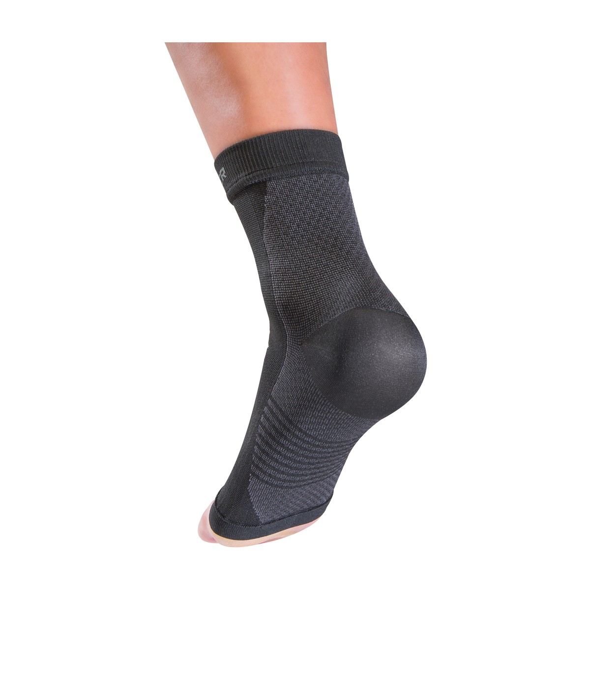 Una persona promedio da unos 6000 pasos al día. Para algunos, estos pasos resultan dolorosos, causando hinchazón y molestias en el arco y el talón. El calcetín de soporte para la fascia plantar OmniForce® se centra en estas zonas mediante una compresión focalizada (20-30 mmHg alrededor del arco y 18-20 mmHg alrededor del tobillo). Esto proporciona una sujeción cómoda. Puede usarse todo el día, debajo o encima de los calcetines.