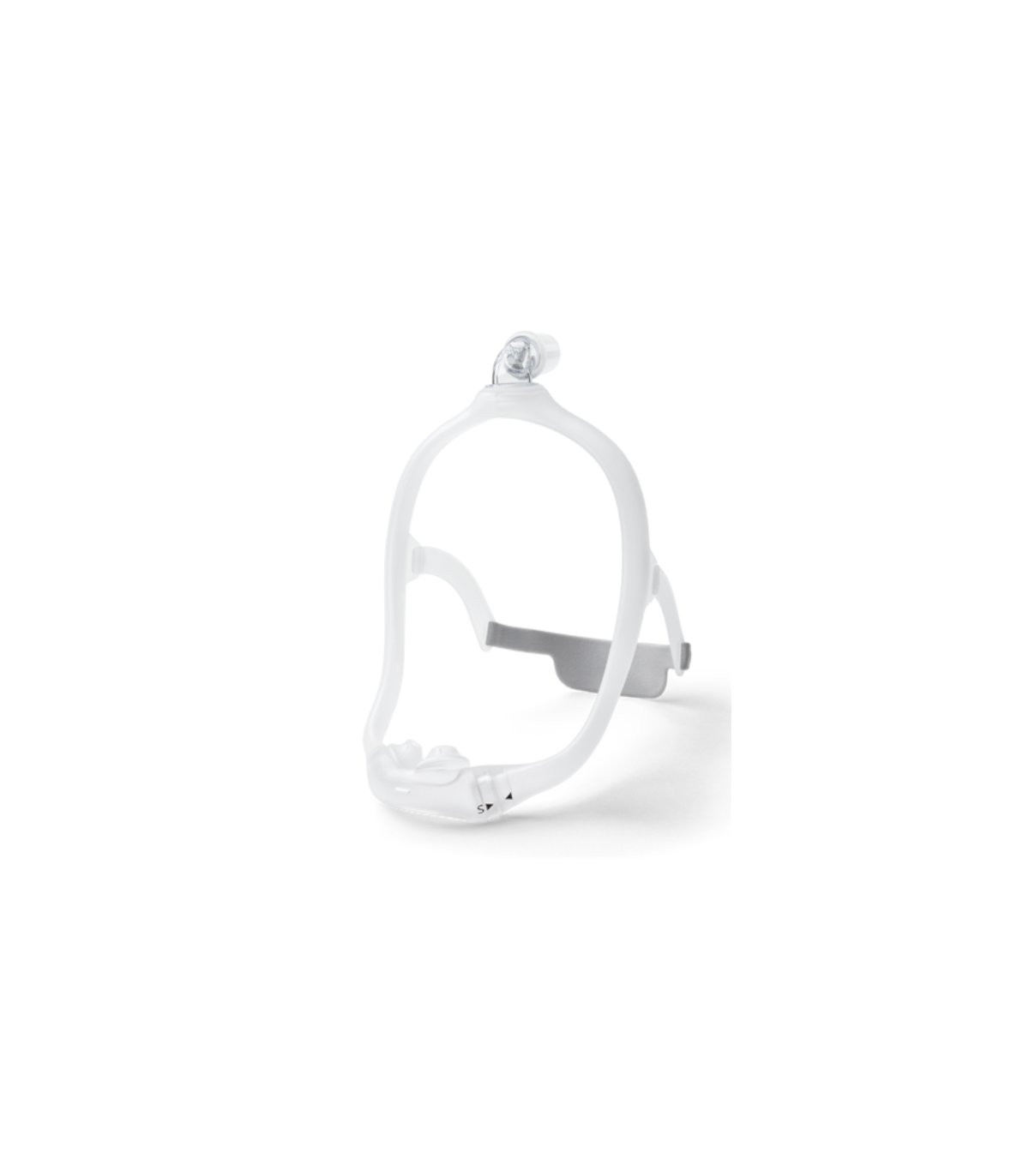 La estructura de la DreamWear Silicone Pillows consta de tubos de silicona que permiten que el flujo de aire llegue hasta la almohadilla nasal. El armazón ayuda a mantener un sellado adecuado y garantizar el flujo de aire en cualquier posición que duerma. Si un lado del armazón de la máscara está obstruido, el flujo de aire se dirige completamente a través del otro lado para evitar la pérdida de flujo de aire. También se incluyen unas fundas suaves que se pueden colocar en el armazón para ayudar aún más a evitar la irritación.