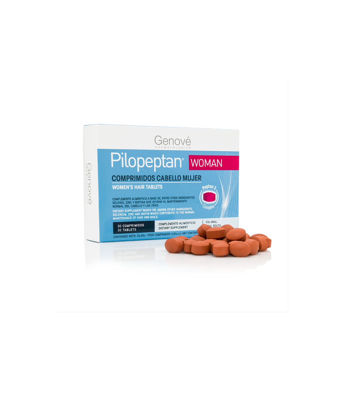 Pilopeptan Woman Comprimidos es un complemento alimenticio formulado específicamente para mujeres que experimentan caída capilar ocasional o efluvio telógeno. Su fórmula ha sido desarrollada por expertos en salud capilar, incorporando activos científicamente probados que fortalecen el folículo piloso, estimulan el crecimiento y devuelven al cabello su fuerza y vitalidad natural. Un tratamiento pensado para acompañarte desde dentro, en los momentos en los que tu cabello necesita un apoyo extra.