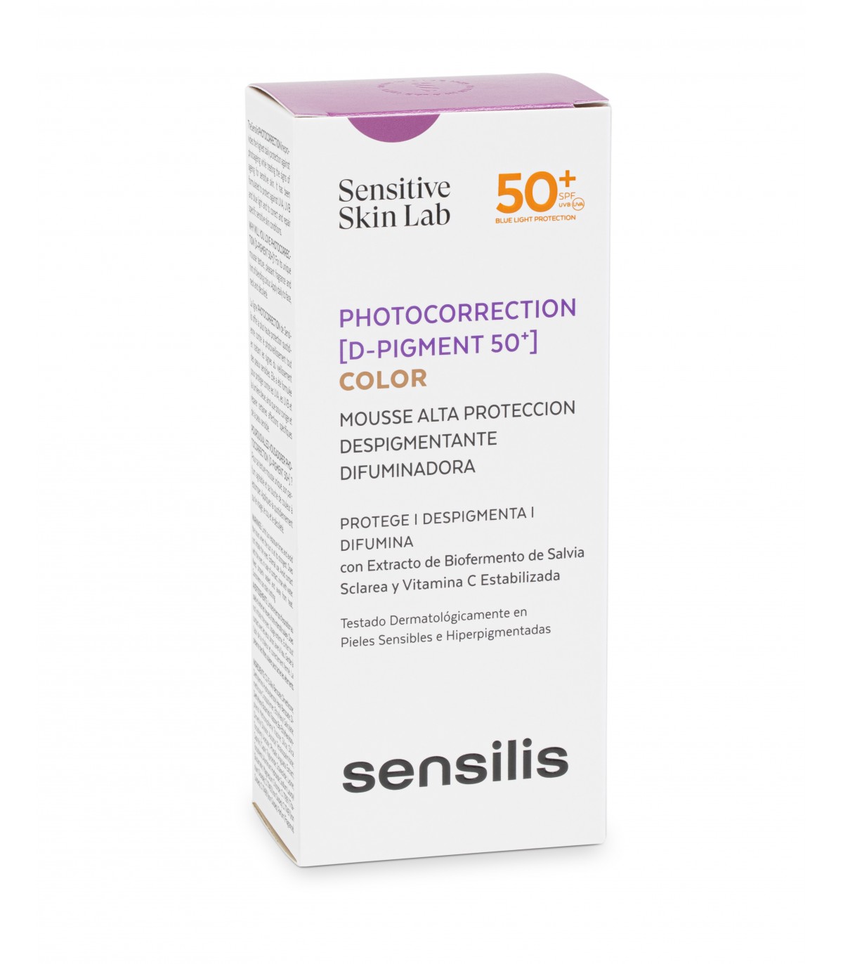 Mousse con muy alta protección 50+ con color que protege frente al UVA, UVB y la luz azul y corrige y difumina las manchas en pieles sensibles hiperpigmentadas de cualquier edad. Con filtros no potencialmente disruptores endocrinos, no solubles al agua y no nanos.