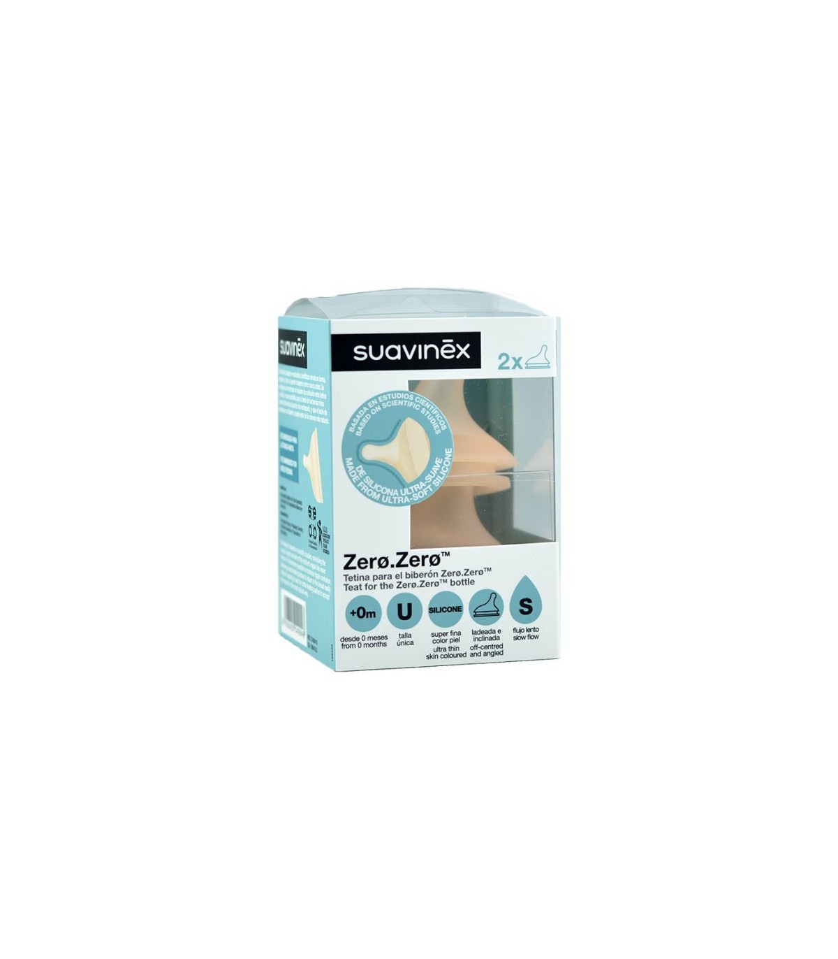 Pack de 2 tetinas de repuesto para el biberón ZeroZero. ¡Tetina compatible con la lactancia materna!